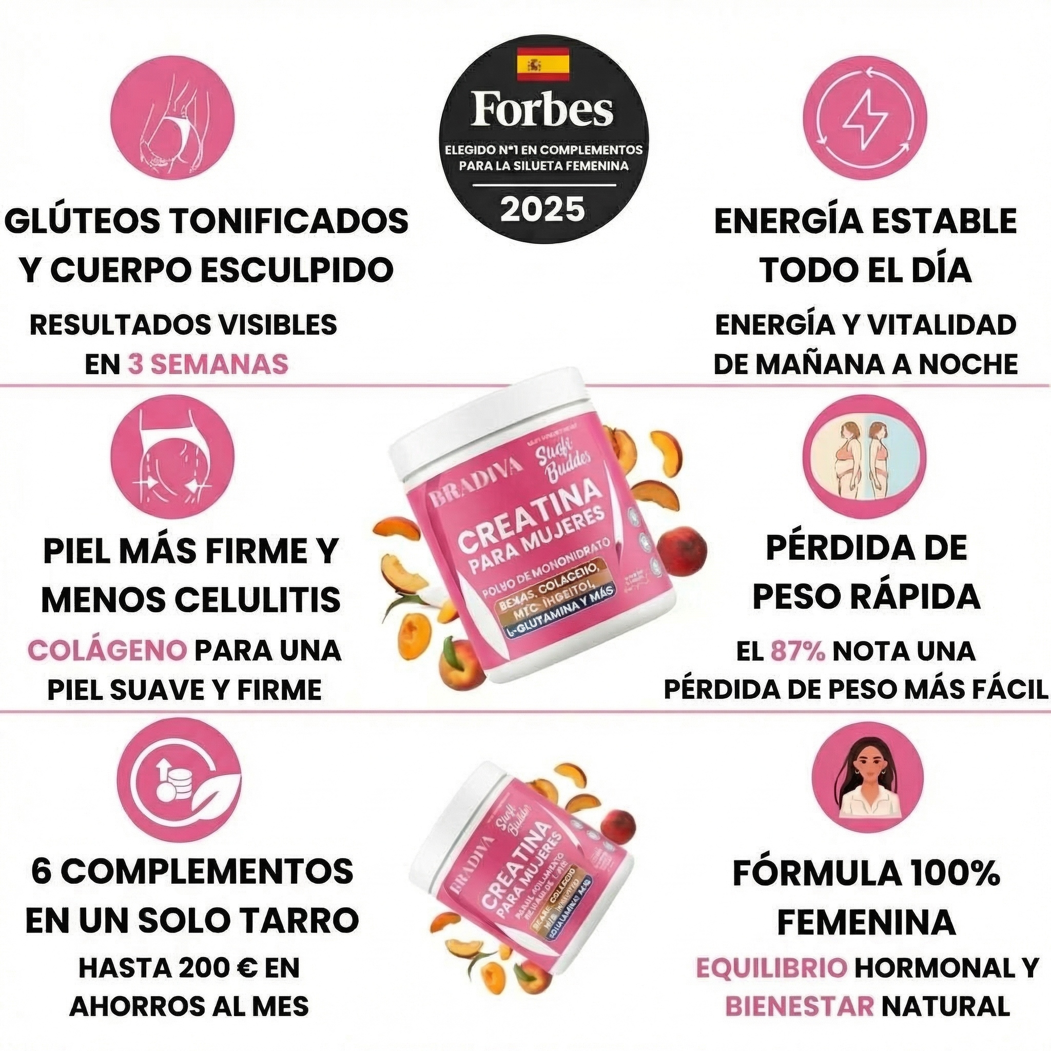 Bradiva reemplaza la mayoría de los suplementos: creatina, BCAA, colágeno, glutamina y vitaminas esenciales.